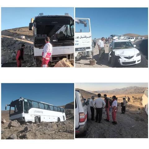 امدادرسانی در تصادف خودرو سواری مزدا با اتوبوس