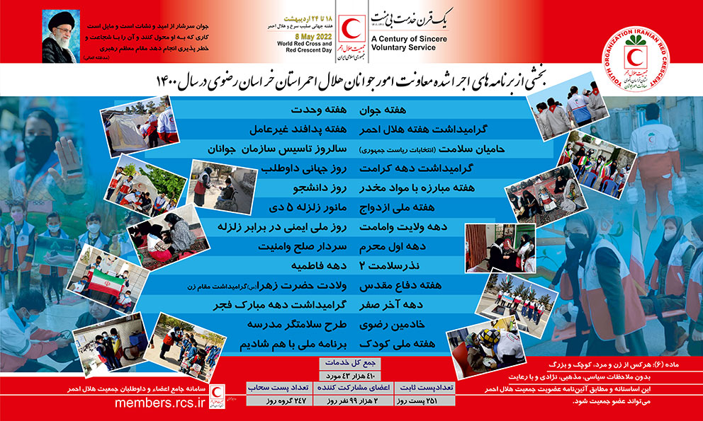 مشارکت بیش از 4 هزار نفر از اعضا جوانان هلال احمر خراسان رضوی در برنامه های هفته هلال احمر