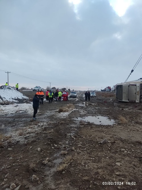 امدادرسانی به حادثه واژگونی خودرو اتوبوس در محور نیشابوربه سبزوار